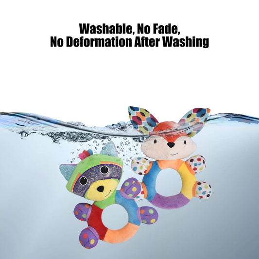 HAHA Baby Teething Rattle Toys, Infant Girl Boy Learning Toy Newborn Soft Handbell Grab Shaker Crinkle Squeaky Sensory Travel Accessories for 0 3 6 9 12 Months Old