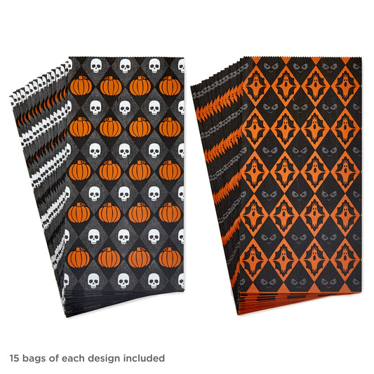 Hallmark Halloween Party Favor and Wrapped Treat Bags (30 Ct., Skulls and Pumpkins, Ghosts and Eyes) for Trick or Treating, Class Parties, Luminaries, Crafts, Día de los Muertos