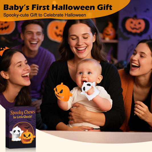 Halloween Baby Teething Mitten Toys 2Pack, Silicone Pumpkin & Ghost Teethers for Newborns, Infants & Toddlers, Easy-Grip Hand Teething Gloves for Relief, Perfect Baby’s First Halloween Basket Stuffers