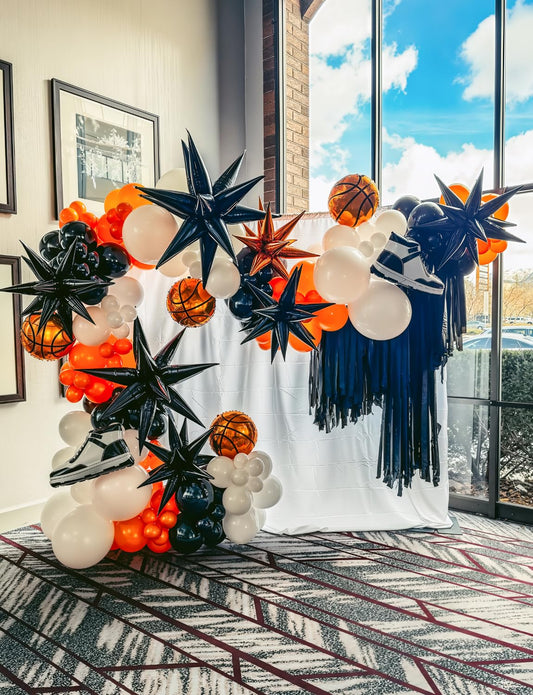 Halloween Balloon Garland Arch Kit, 134 pcs Orange and Black Balloons with White Gold Latex Balloons in Different sizes, for Halloween Birthday Party Decor Indoor Outdoor