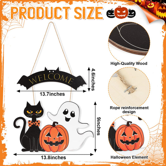 Halloween Decoration Wooden Ghost Door Halloween Wreath for Front Door Sign Wall Signs Decor, Pumpkin Black Cat Wreaths Sign Hanging for Home Wall Decor Outdoor Indoor Farmhouse Party Supply