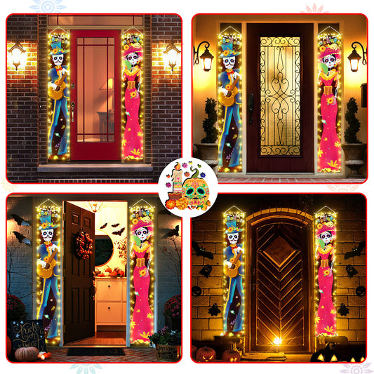 Halloween Decorations Indoor Dia De Los Muertos/Day of The Dead Decorations Lighted Porch Signs Banners Outdoor Wall Door Decor (Not Batteries Included)