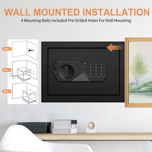 1.2 Cubic Feet Small Fire Safe Box for Home, Fireproof Lock Box, Security Money Safe with Digital Keypad, Spare Keys and Removable Shelf, Personal Home Safes for Money, Jewelry, ID Documents