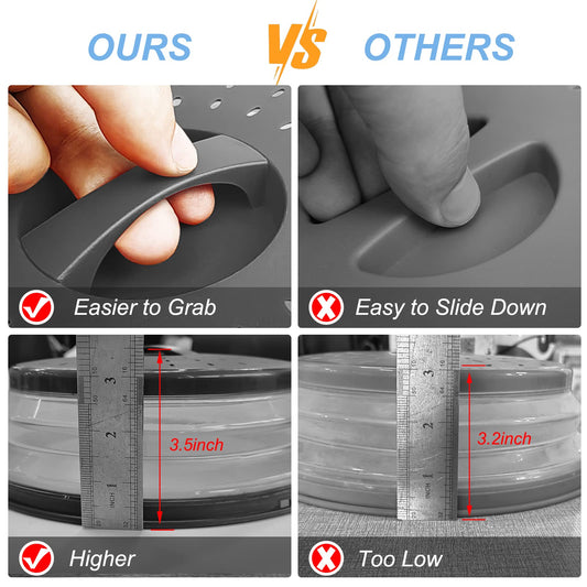 10 Inch Microwave Food Cover & Collapsible Silicone Mat - Splatter Guard, Plate Holder & Kitchen Colander for Meal Prep, Charcoal