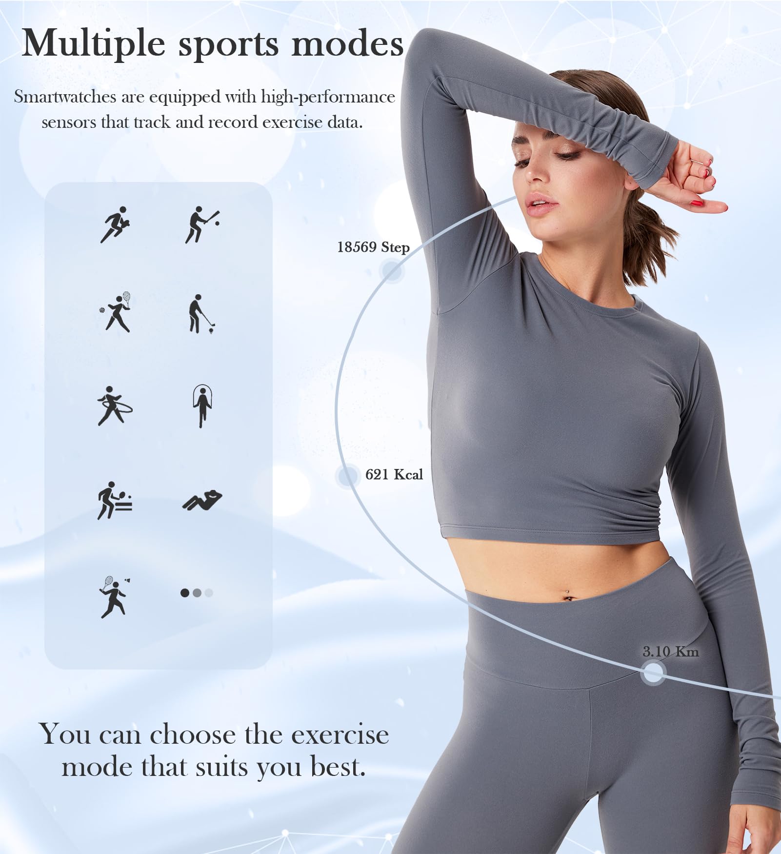 • 【Sleep and Health Monitor Watch】The sleep monitor of the women smart watch can automatically monitor your sleep and analyze your sleep quality (deep sleep, light sleep, awake). This health watch is also capable of monitoring your heart rate, blood pressure, and blood pressure around the clock. (Not for medical use) Functions such as women's menstrual cycle, sedentary reminders, and drinking reminders can help you live a healthier and more active life.