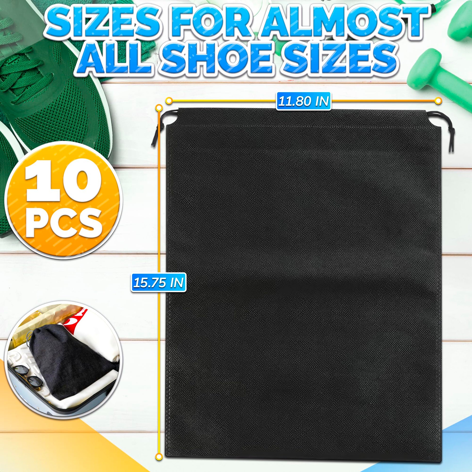 • ❗NON-MESH, SOLID SHOE BAG❗Optimal Size Travel Shoe Bag: Package includes 10 Pcs shoe travel bags for packing 15.75' x 11.80' inches. You can easily store one pair of sneakers and one pair of slippers in one bag saving space