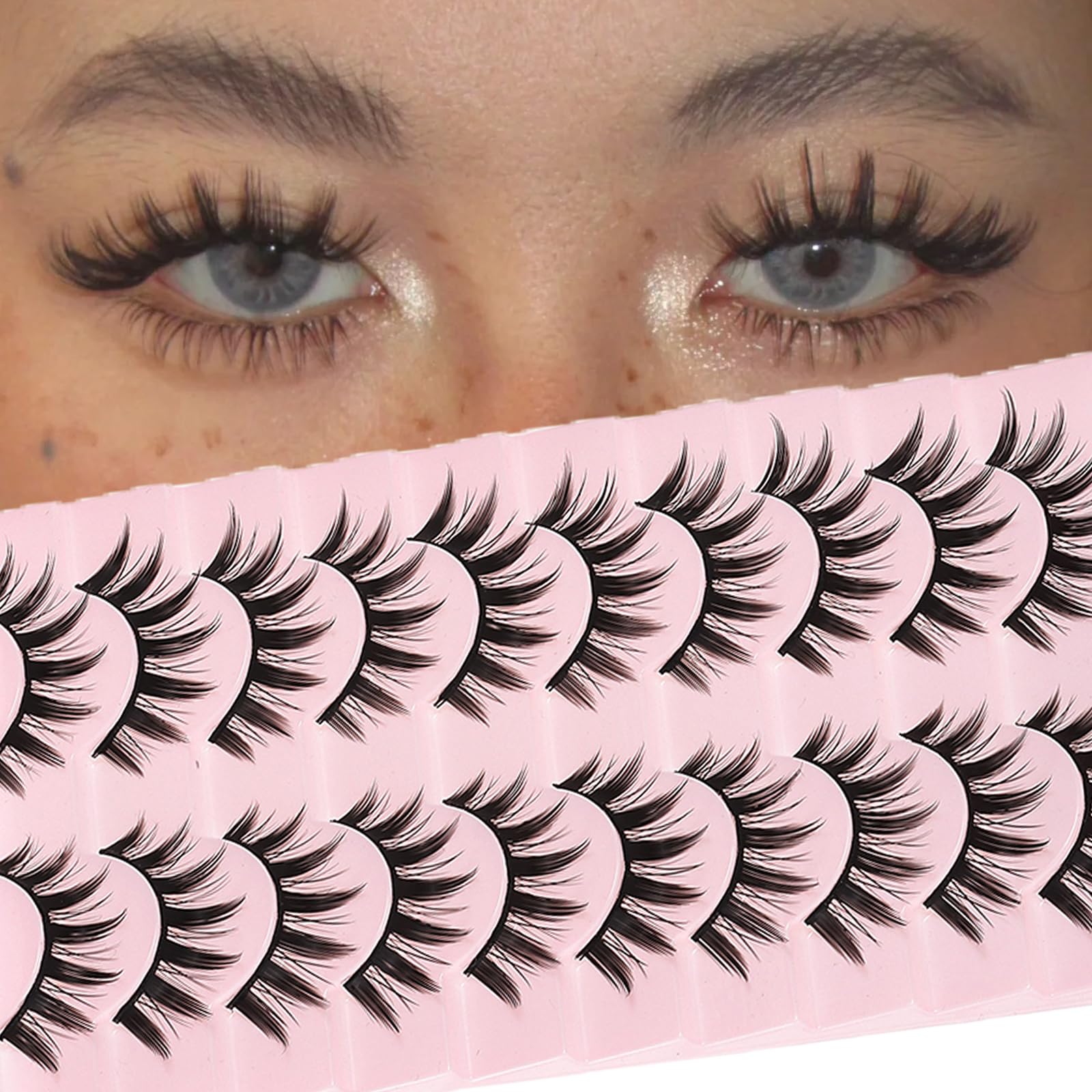 HIGH-QUALITY: Each pair of our manga-style eyelashes is made from premium synthetic fibers, enduring, lightweight, reusable, and not easy to shed. The clear lash band blends seamlessly with your natural lashes, providing a flawless, natural look that is perfect for any occasion