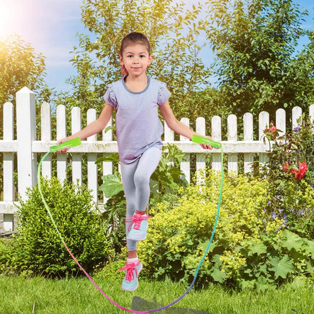 • These jumping ropes for kids come in eye-catching colors to immediately capture the attention of any kiddo,they will love the bright rainbow colors and the mesmerizing effect of the colored skip rope slicing through the air