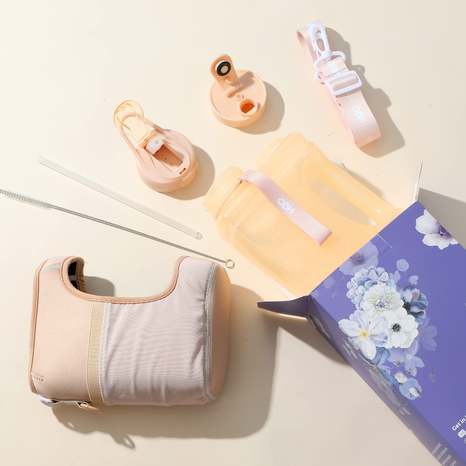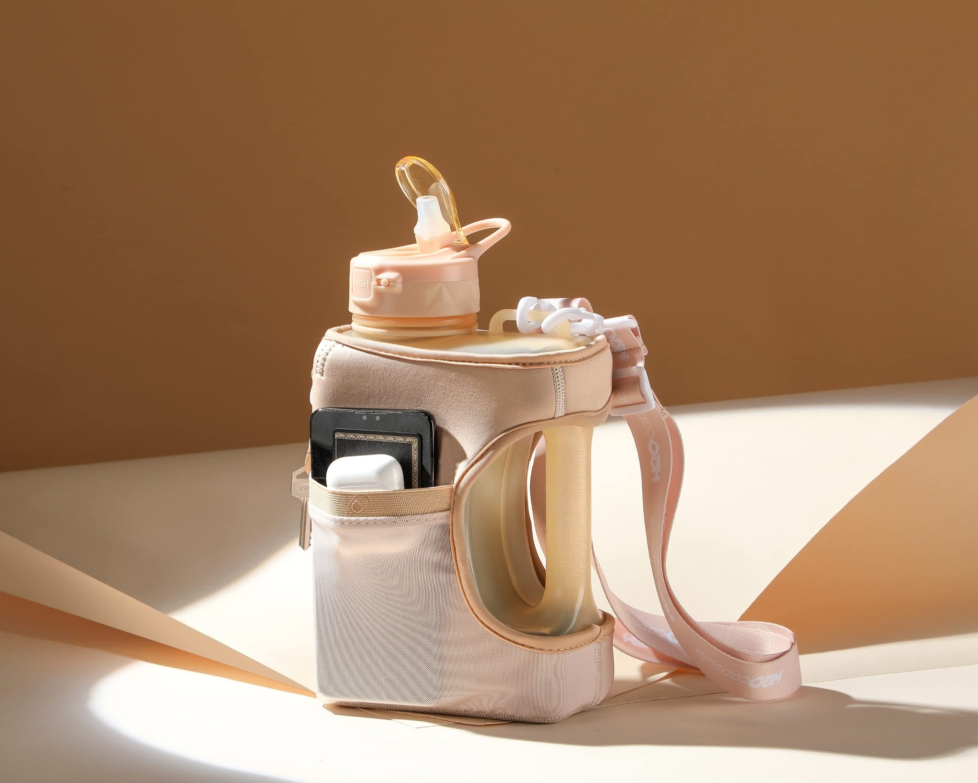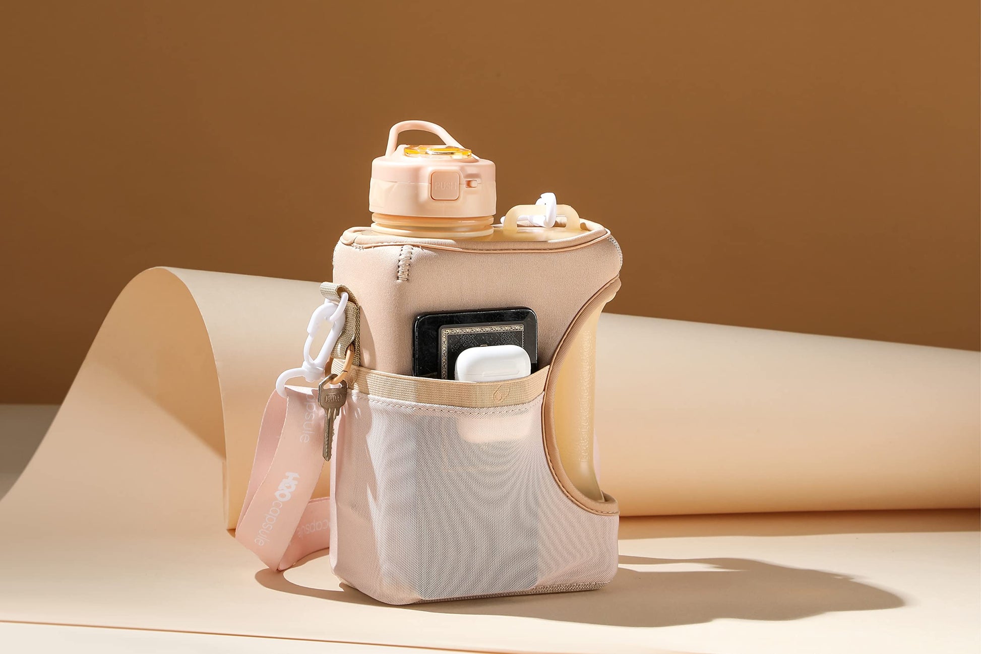 • STORAGE SLEEVE HOLDS ANY PHONE: A patent-pending removable neoprene protective sleeve has an easy access pocket to carry a cell phone of any size, air pods, lipstick and more, and an adjustable shoulder sling strap is ideal for walking, hiking and travel! Our plastic water bottles come in a variety of patterns and colors for any style you like.