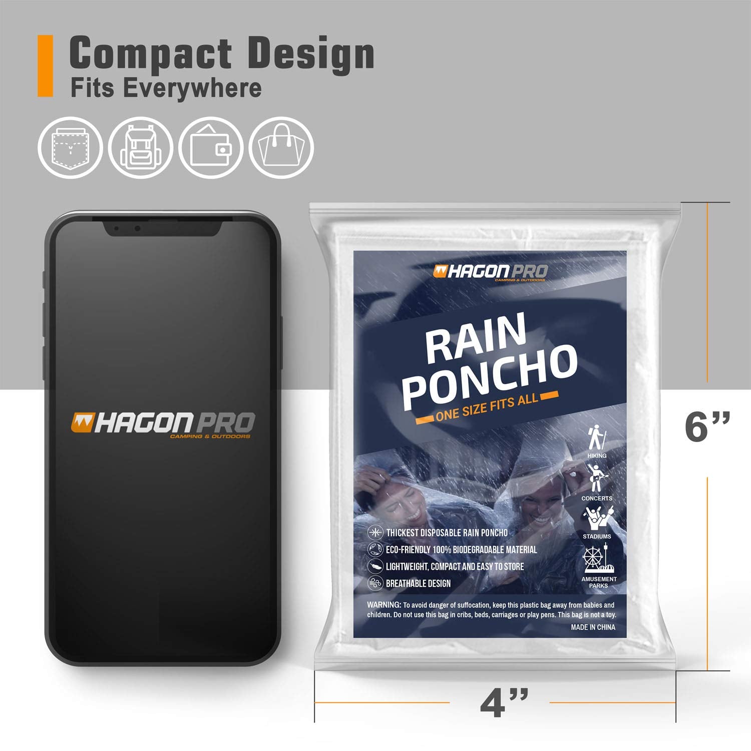 • Reliable Rain Protection On-the-Go: Stay dry and confident during sudden downpours with Hagon PRO disposable rain ponchos, offering full-length 48' x 40' coverage and a secure hood for complete weather protection. Perfect for commuters, festival-goers, emergency kits and preparedness kits, these transparent rain coats keep you ready for anything