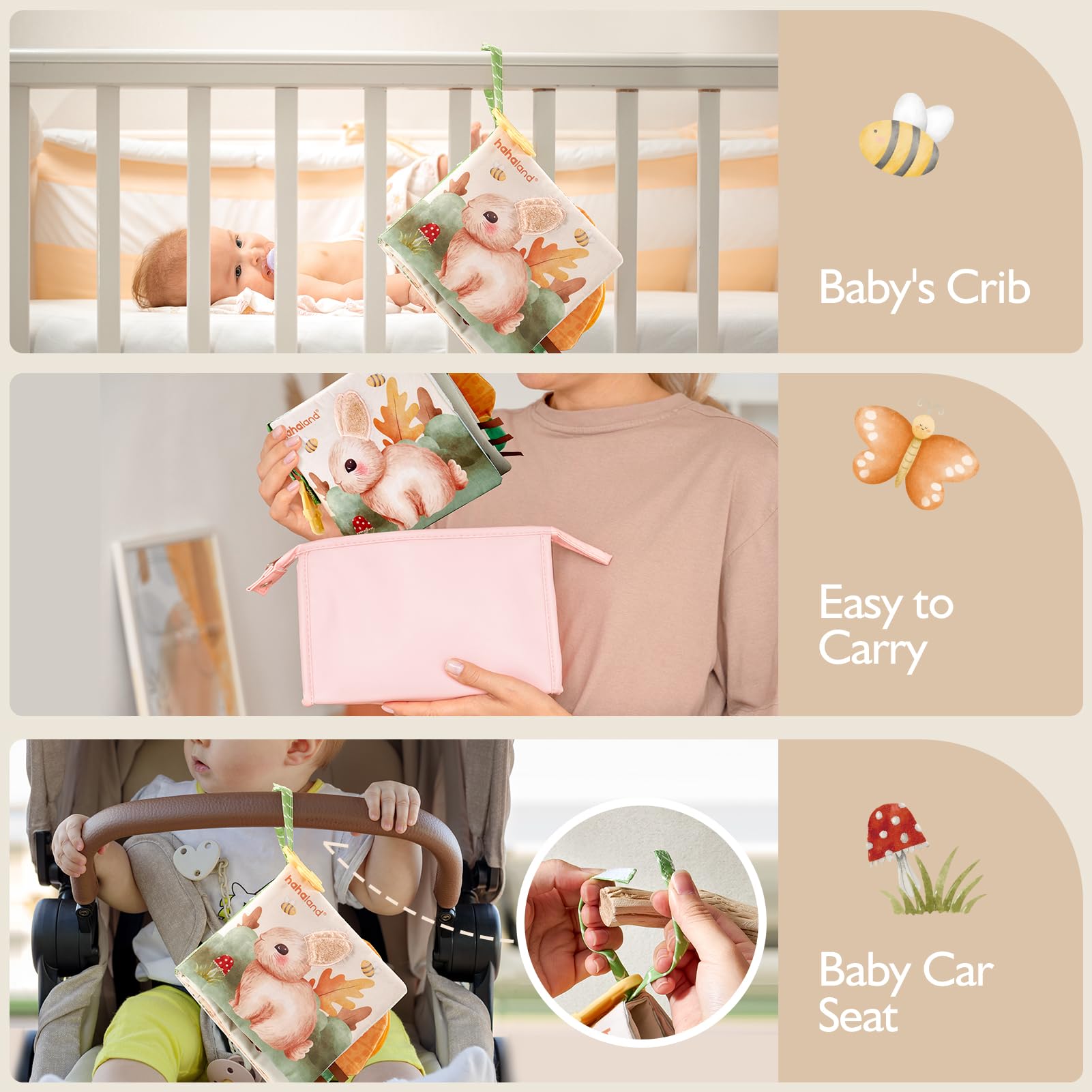 • Colorful Pages: hahaland baby books 0-6 months feature bright, bold colors, friendly characters, and engaging patterns to attract your baby's attention and promote visual development; Babies will start to love touching them for the crinkly material and flipping through the pages, which helps them learn different types of words and colors. Multiple textures and surprise crinkles encourage exploration which makes it fun for babies and toddlers to discover, learn, and read