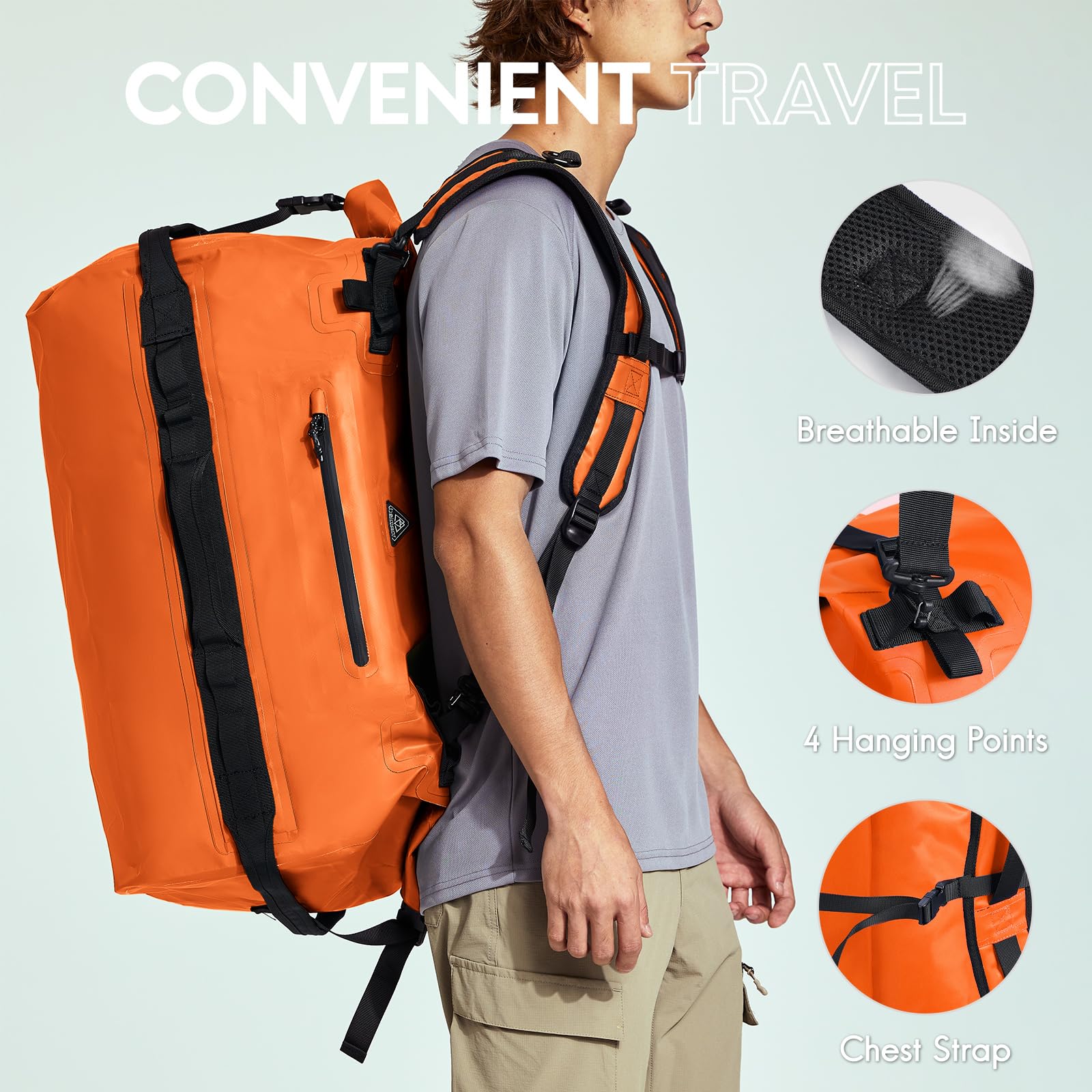 Haimont 60L Waterproof Duffel Bag Backpack Outdoor Heavy Duty Duffle Bag with Backpack Straps for Camping Travel Kayaking for Men Women, Orange