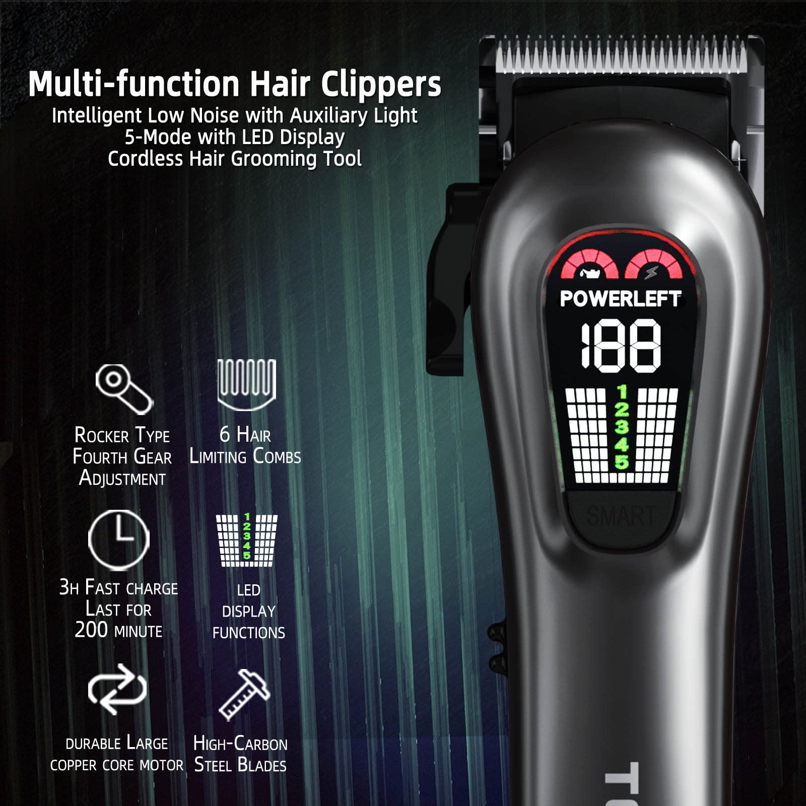 • Professional Hair Clippers&LED Display TCMKY Professional Hair Clippers for men which can display the remaining power,charging reminder indicator and Blade lubrication reminder indicator. Our ultra-high definition LED display provides you with all information to ensure that you use it correctly. In addition, it includes a full size guide comb to meet your need for trimmer your head and face. Due to its low noise and safety blade it is also suitable for children or young children to have a haircut