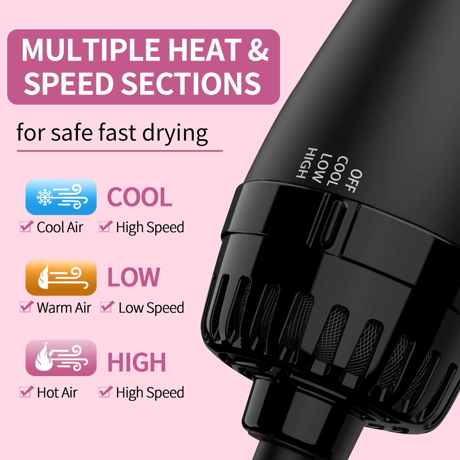 • Style And Dry In 1-Step: Style, dry & volumize your hair in one tool, max drying power with less frizz and helps reduce hair damage. This professional hair dryer brush enables you to complete the exquisite and gorgeous salon blowout results efficiently in a shorter time