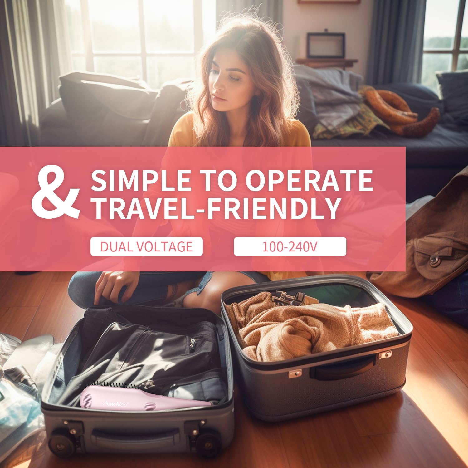 • [100V-240V & Worldwide Use] The brush straightener automatically adjusts from 100V-240V and can be used with just a portable plug adapter. The 2-in-1 straighten brush sized curling iron package includes a beautiful diamond-patterned carrying case, so you can put the dual voltage hair straightening brush into the bag and take it with you after use, improving your traveling efficiency.