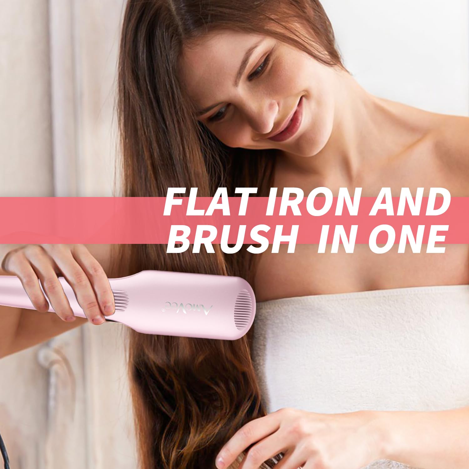 Hair Straightener Brush Straightening Brush Ceramic 2-in-1 Ionic Straightening Brush with Anti-Scald Feature,MCH 20s Fast Heating up, 170℉-450℉,LCD Display, Dual Voltage
