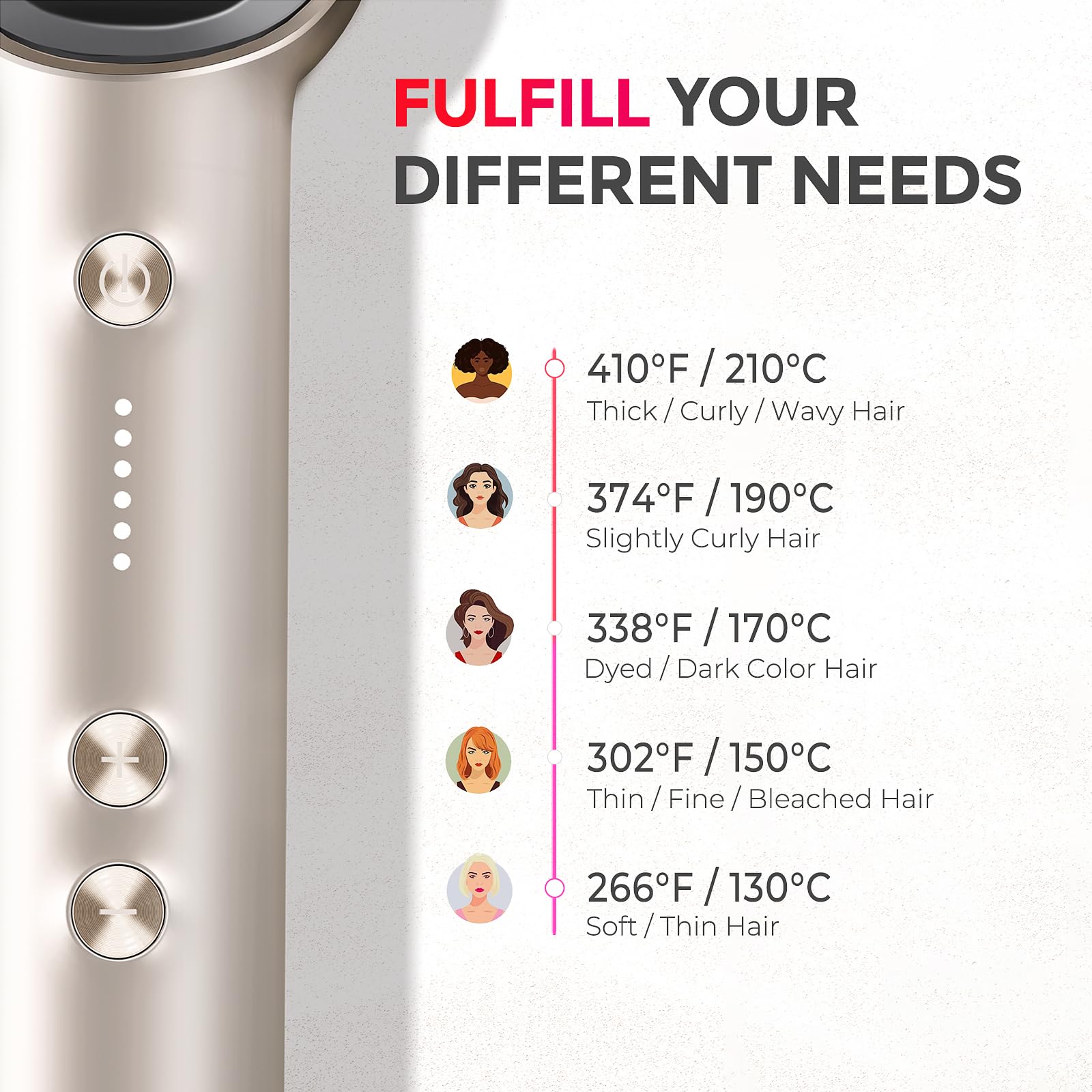 • 5 Heat Settings for Different Hair Types - The hair straightening brush has 5 temperature settings for different hair types. Heating up in just 20 seconds, the hair brush straightener saves you time during your morning rush.