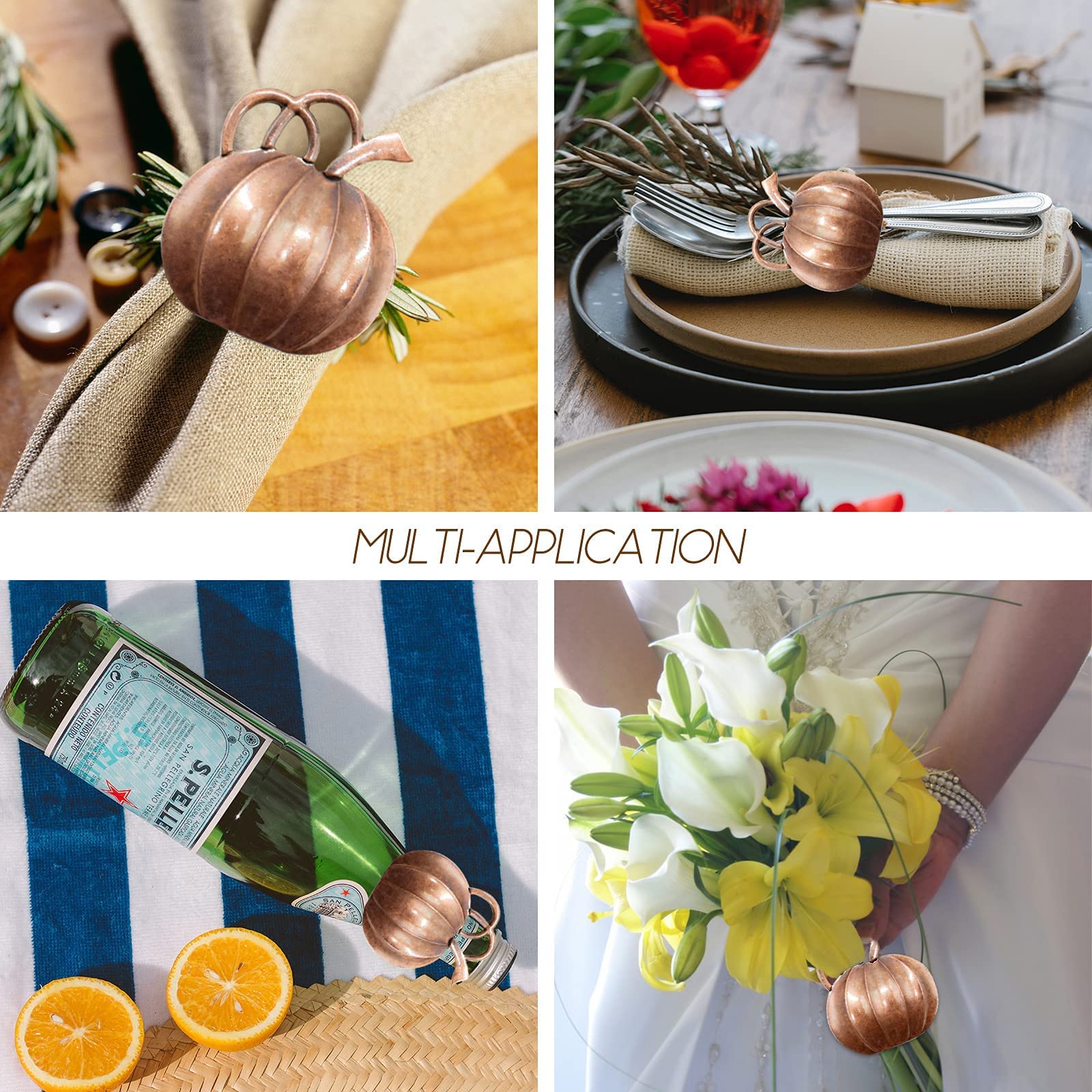 Details: 🎃🍁Holiday napkin holder rings can make the decorative monotonous napkins and dining tables become more elegant and eye-catching, can transform any ordinary dinner party into a truly memorable, you will get a lot of praise at the party!Specification:1)Material: Metal.2)Size: 2.17 x 1.58 inches.3)Color: Bronze.4)Pattern: Pumpkin.5)Package includes: 12 x pumpkin napkin ring holders.6)Applications: Widely used in weddings, banquets, celebrations, graduations, daily dining, Halloween, Christmas, New Year, Thanksgiving, and other occasions. Also can be used for multiple decorating ideas, or as gift send to your friend. You can decorate brightly colored bouquets and decorations, add flare to your table, everyone will be impressed by the subtle yet eye-catching touch.Note: Manual measurement, please allow slight errors on size. The colors may exist a slight difference due to different screens.