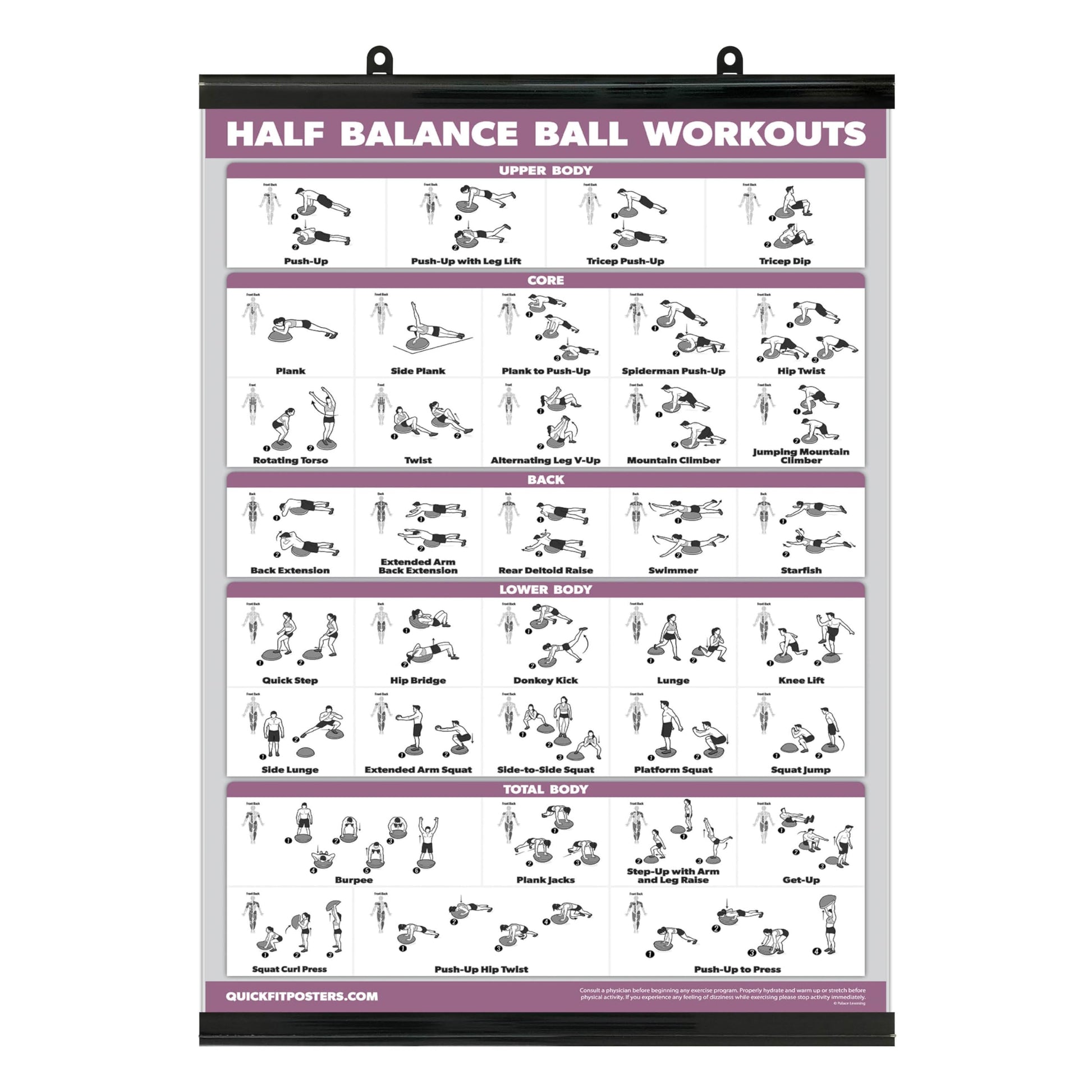 Half Balance Ball Workout Poster - Exercise Chart (LAMINATED WITH PLASTIC FRAME, 18" x 24")
