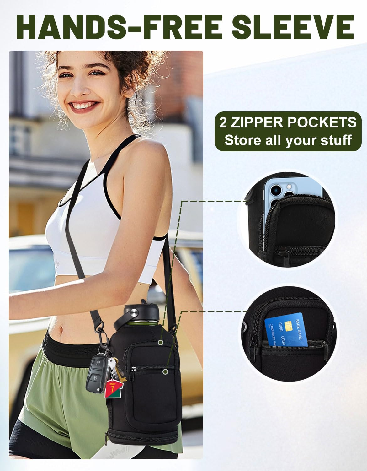 • PROTECTIVE BOOTS & STORAGE SLEEVE: Upgraded silicone boots prevent shattering and cracking when stainless steel water bottle accidental dropped. And storage carrying pouch with removable shoulder strap for convenient hands free carrying! The safe zippered pocket design to stores all your stuff, holds your cards & phone & key