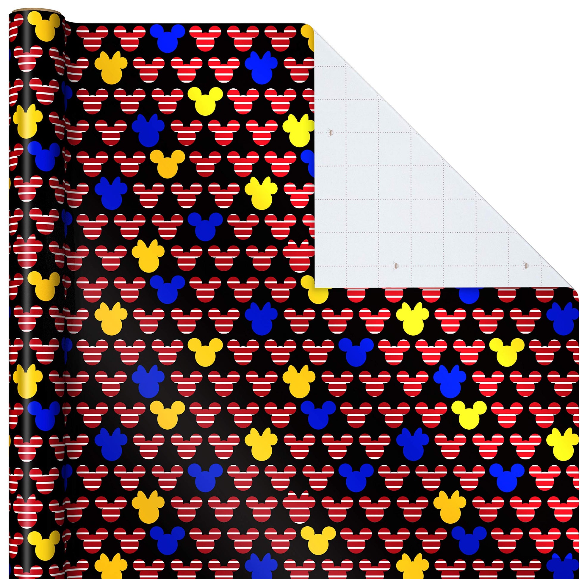 Hallmark Disney Mickey Mouse Wrapping Paper with Cut Lines on Reverse (3-Pack: 60 sq. ft. ttl) for Birthdays, Christmas, Hanukkah, Baby Showers and More