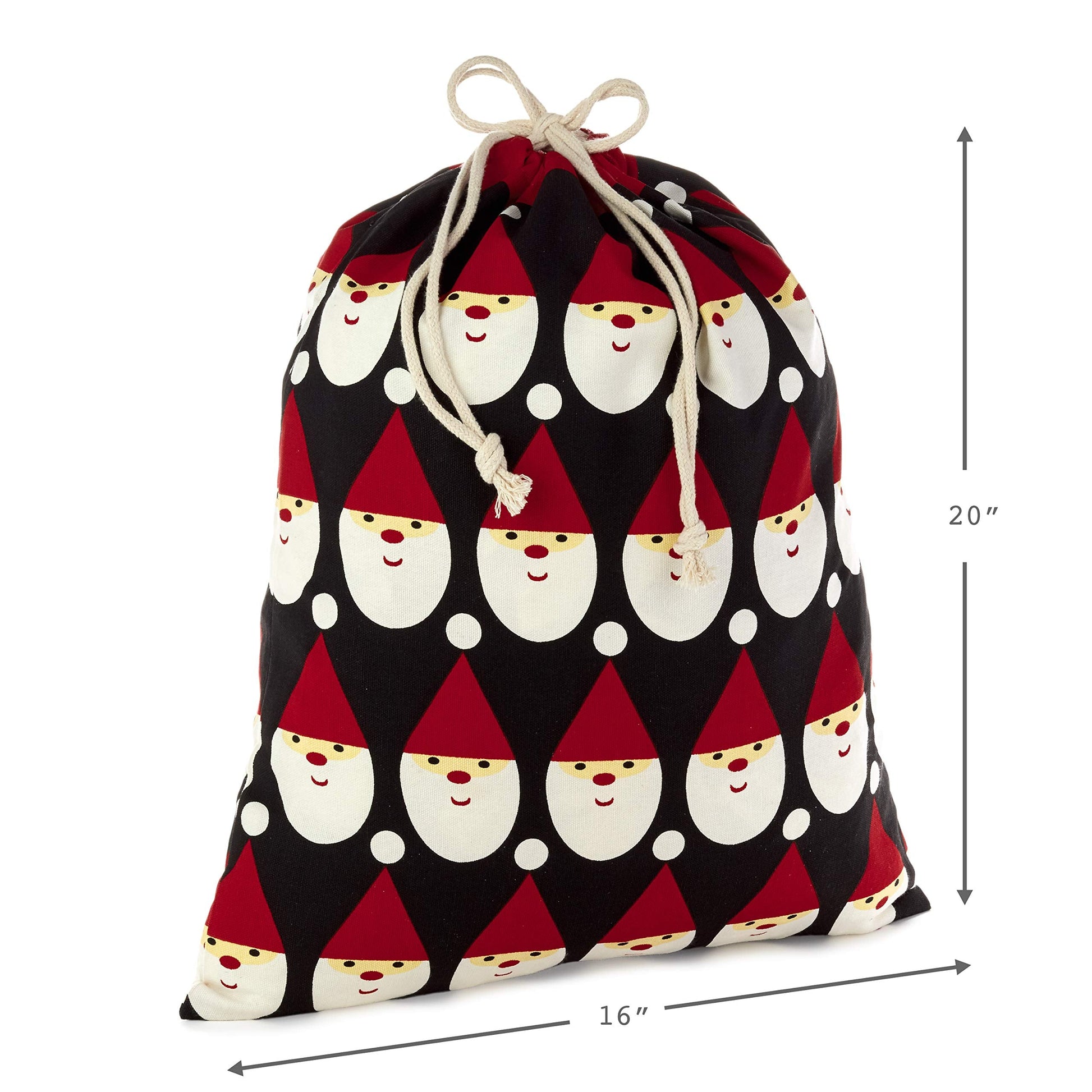 Hallmark Drawstring Christmas Gift Bag Set (2 Fabric Bags with Drawstrings; 1 Medium 10", 1 Extra Large 20") Santa, Red and White Stripe, 5XGB4902