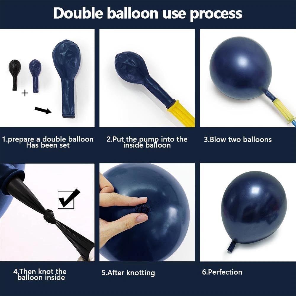 • ATTENTION - Please don't overfill the double stuffed navy blue burgundy red purple black balloon arch garland kit and avoid sunburn or overheat; Double stuffed balloon's color would be a certain difference before and after inflated; Does not include halloween party decor, package only comes with balloons and balloon strip, ribbon and glue dots