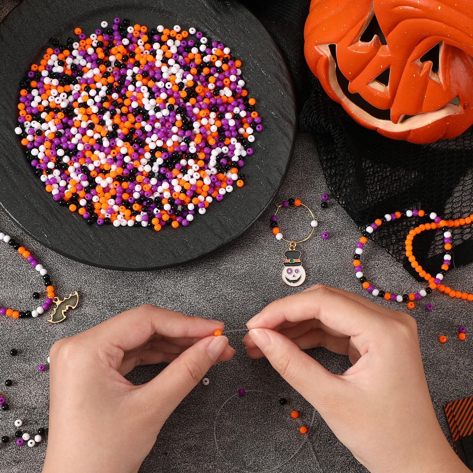 Halloween Beads, 1200Pcs Halloween Spacer Beads 4mm Round Small Craft Beads for DIY Bracelets, Orange & Purple & Black & White