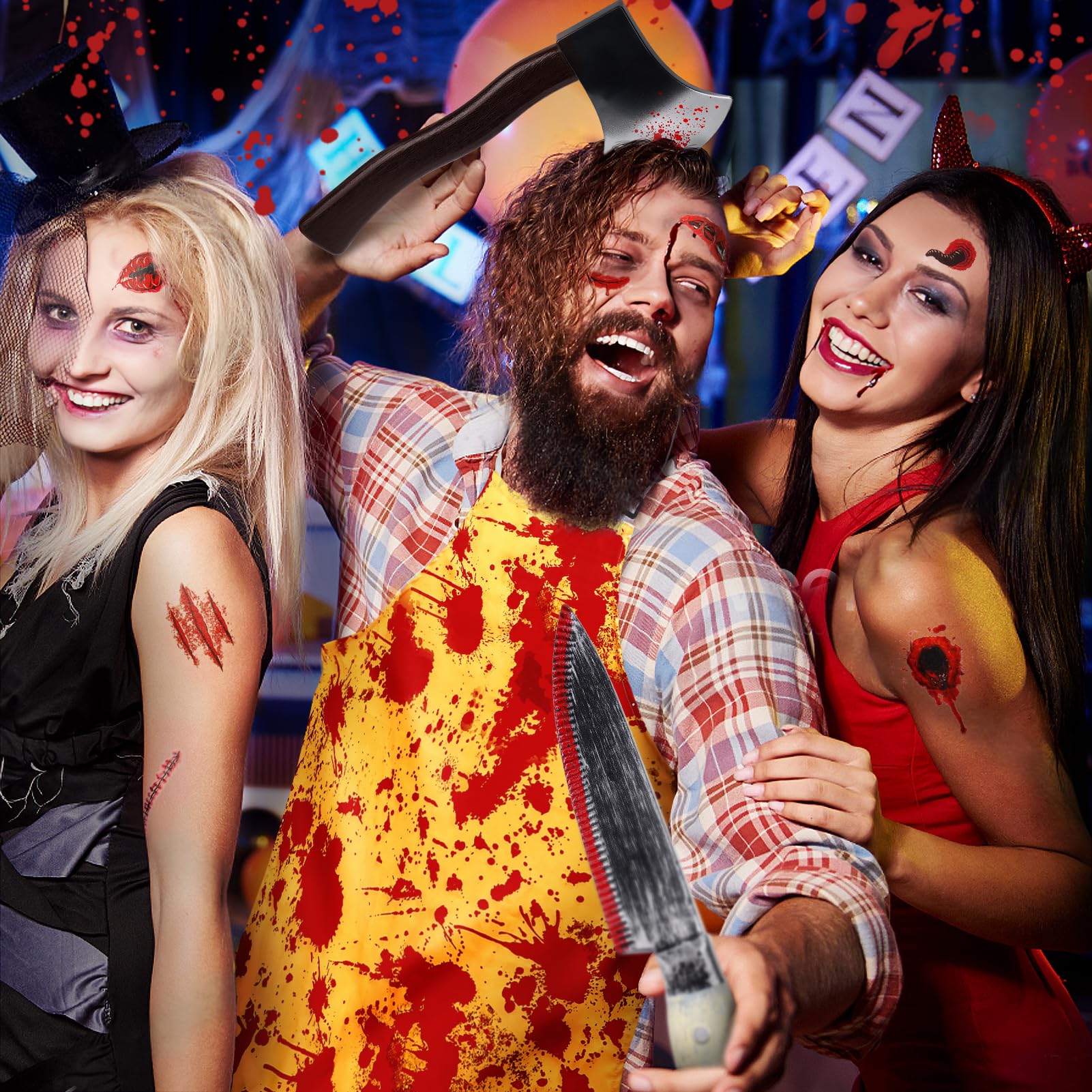 • Package Information: You will receive a set of Halloween bloody butcher costume in the package, including a bloody apron, a bloody knife prop, a axe headband, and five temporary tattoo sheets. Our bloody butcher costume can make your dress scary on Halloween or in a cosplay party.