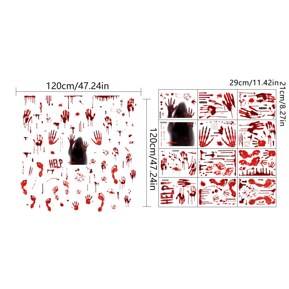 • Spooky & Complete Set: Includes 12 creepy window stickers featuring bloody handprints, footprints, and bloodstains—perfect for creating a haunted house vibe instantly.