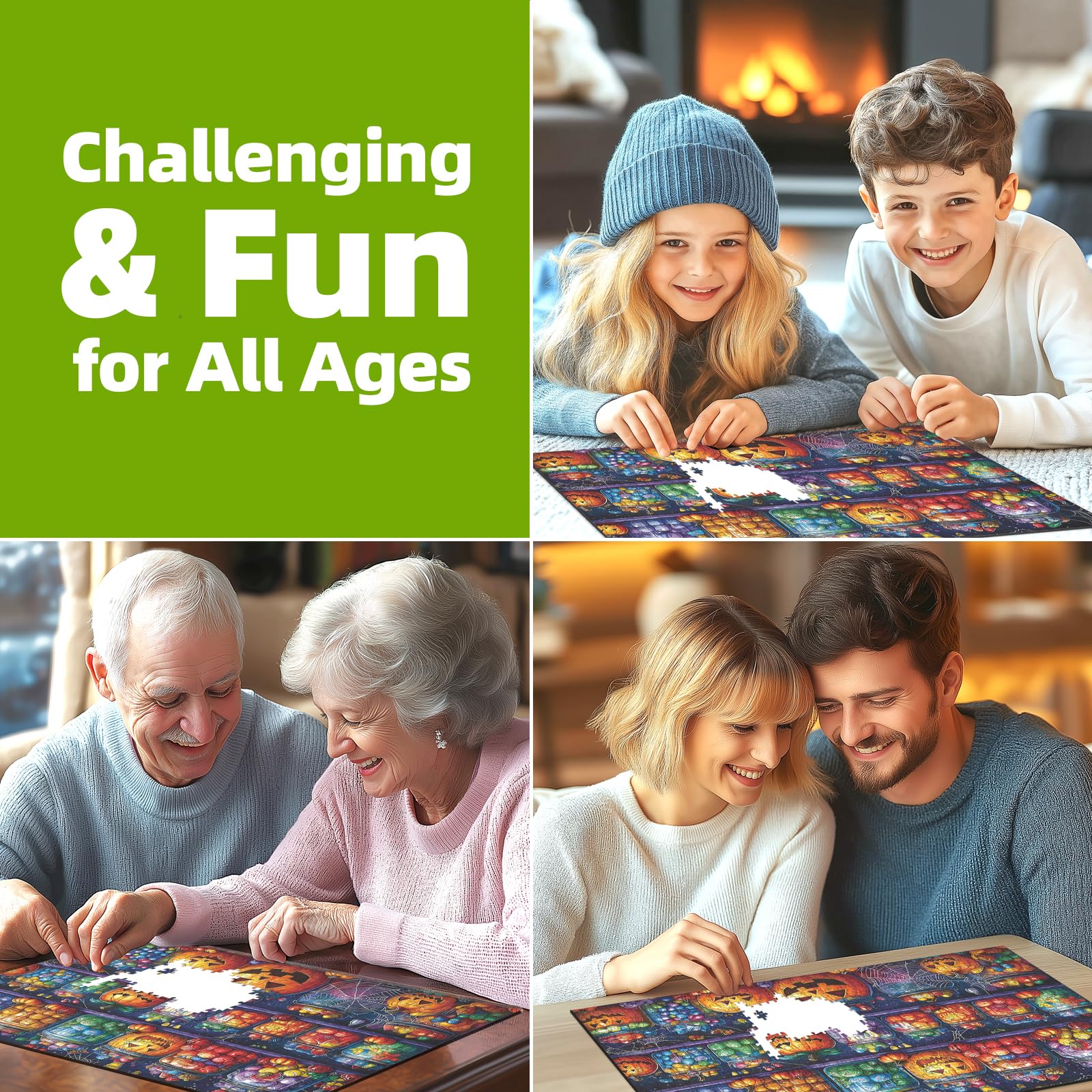 • 🕒 Hours of Spooky Fun: Whether you love puzzle games or fun games for adults, this jigsaw puzzles 1000 pieces for adults offers entertainment for all. Includes a poster for guidance—or skip it for extra difficulty!