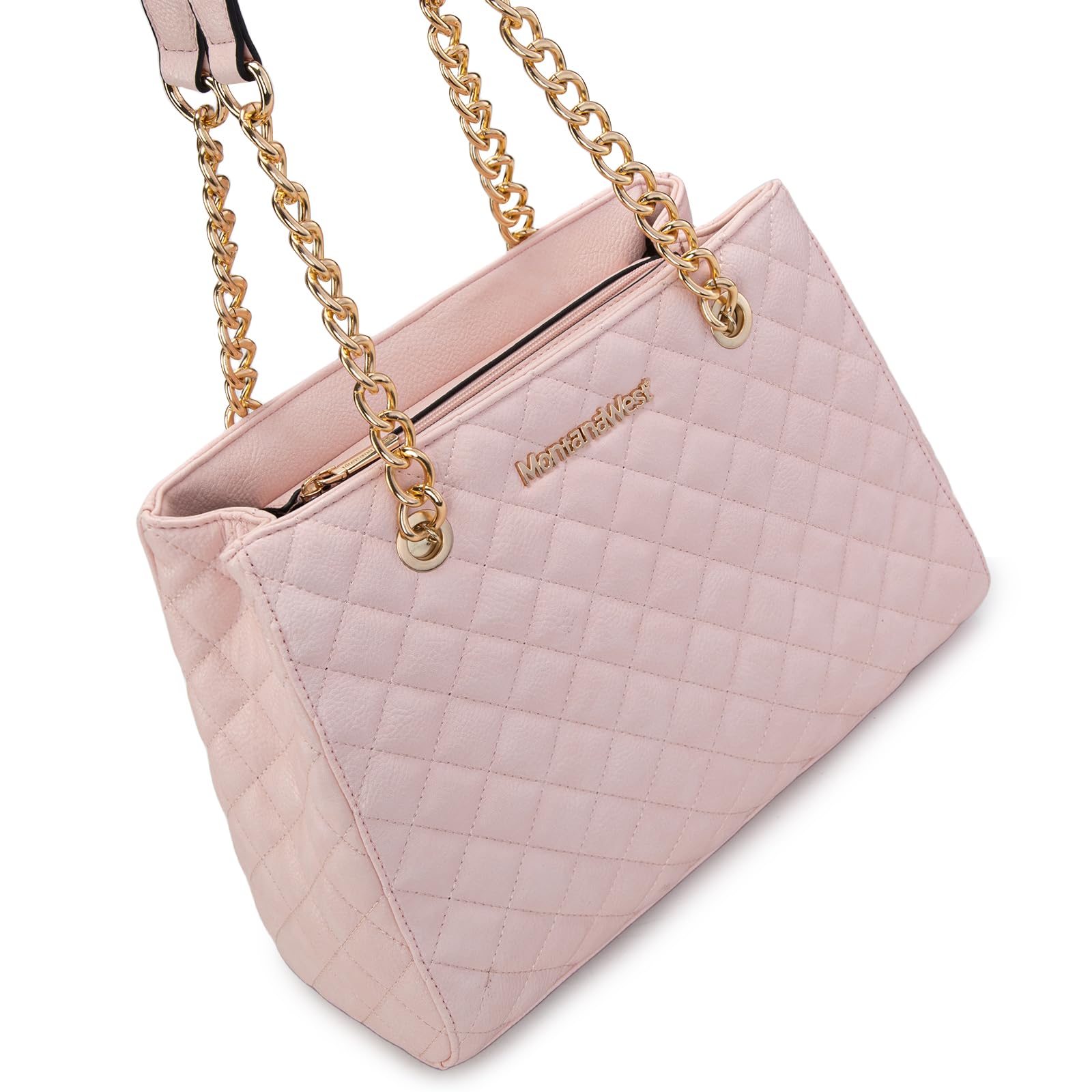 Montana West Tote Bag for Women Top Handle Shoulder Handbag Medium Satchel Purse with Chain Strap Hobo Christmas Gift MWC-040PK