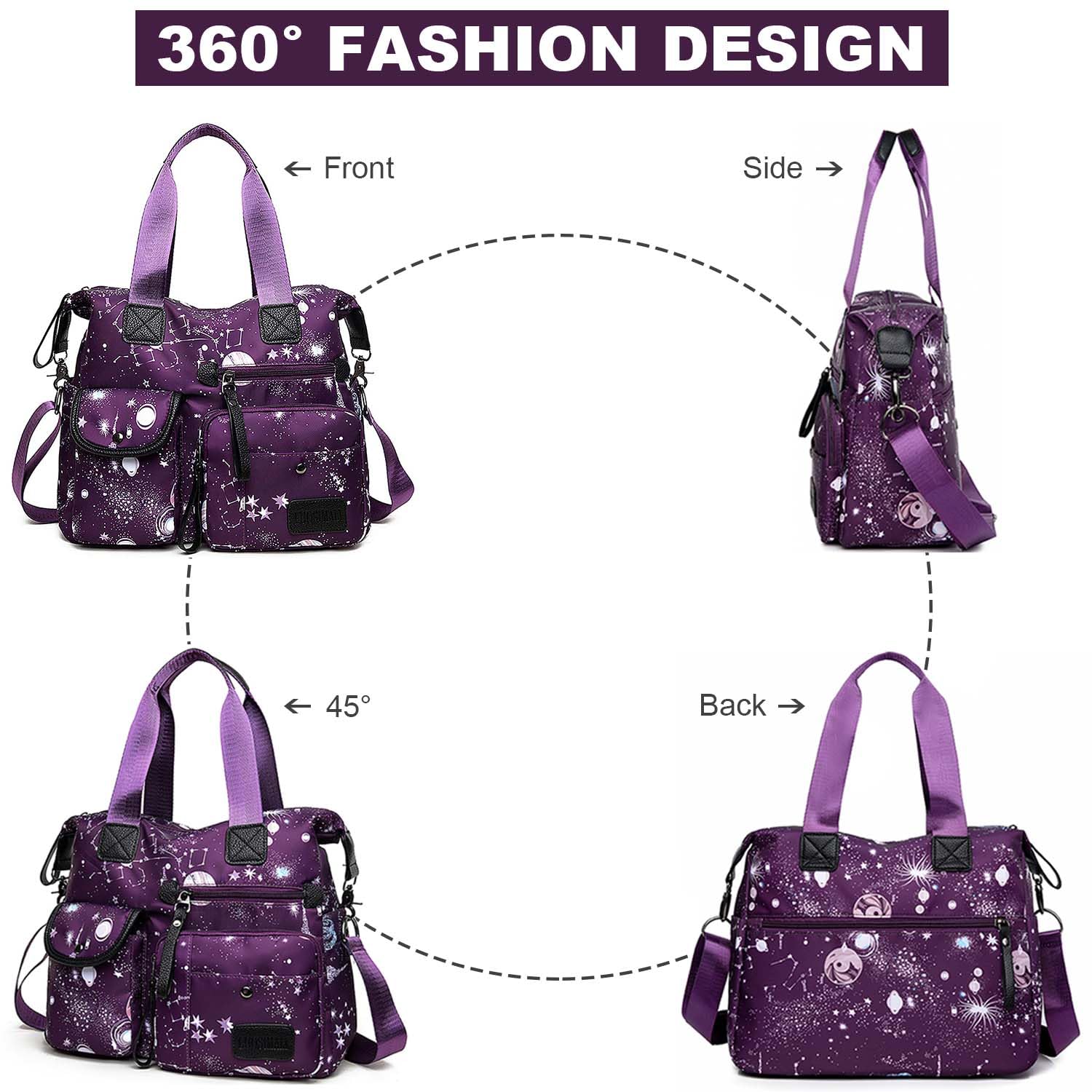 Women's Tote Bag with Multiple Pockets & Zipper,Nurse Bags for Work Nursing Bag,Nylon Tote Handbag for Women,Large Shoulder Handbag Purse,Waterproof Galaxy Cross body Bag for Travel (Purple)