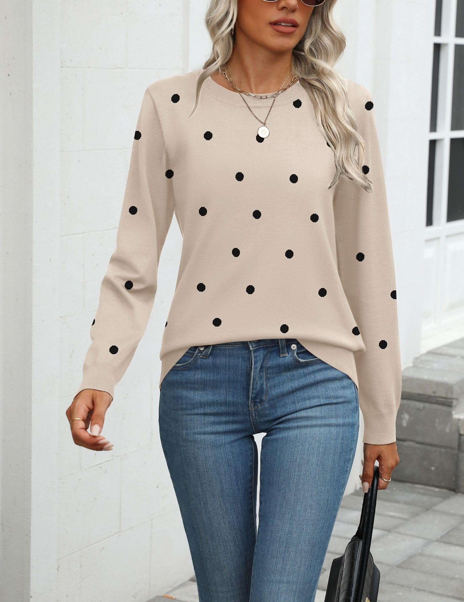 Zeagoo Womens 2025 Fall Sweaters Long Sleeve Tops Classic Crew Neck Pullover Sweaters Loose Dressy Polka Dot Basic Tops